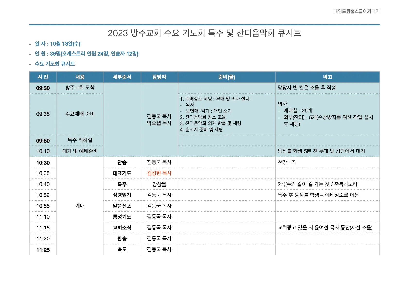 세부사역별 준비