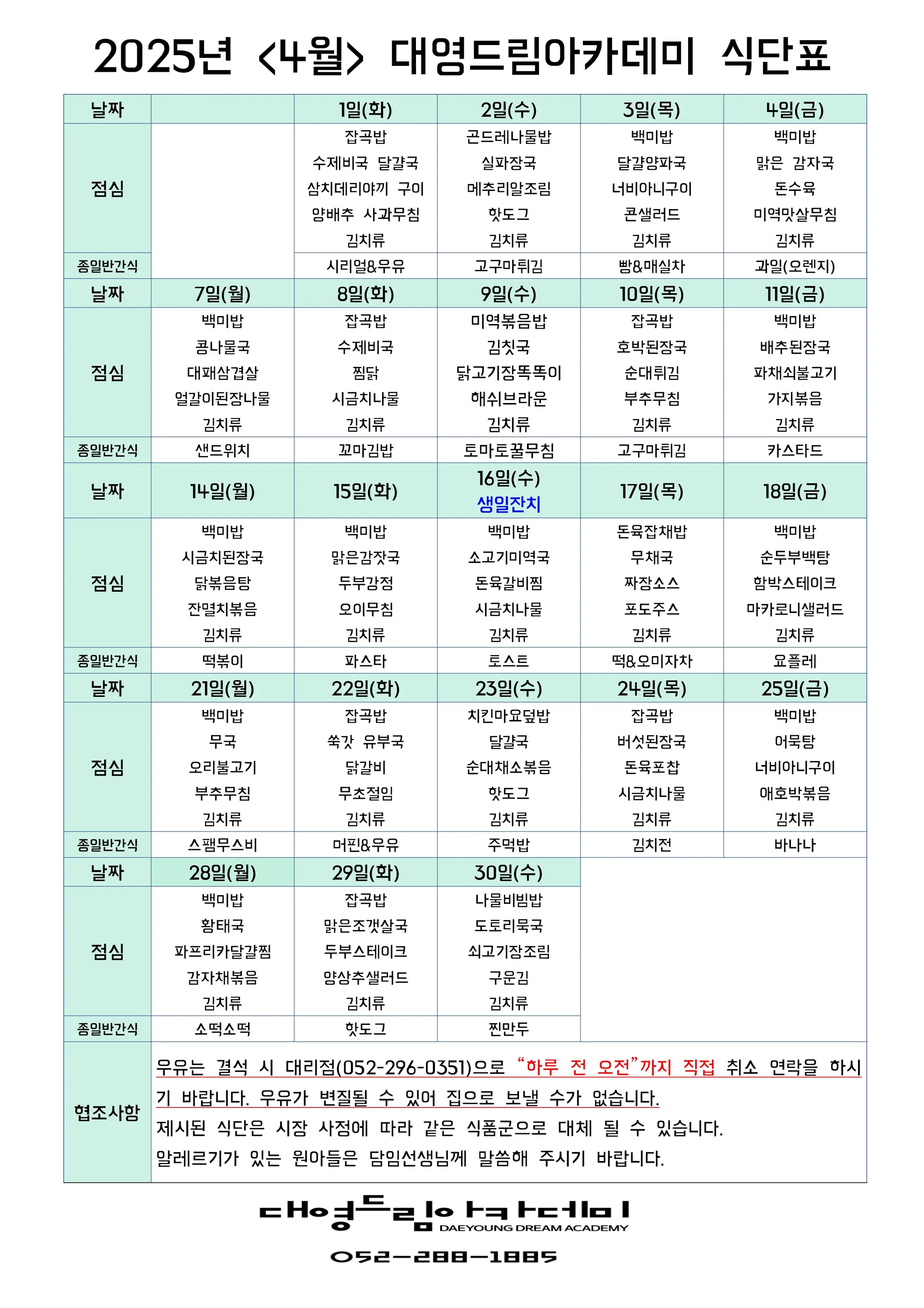 4월 식단표_종일반 간식
