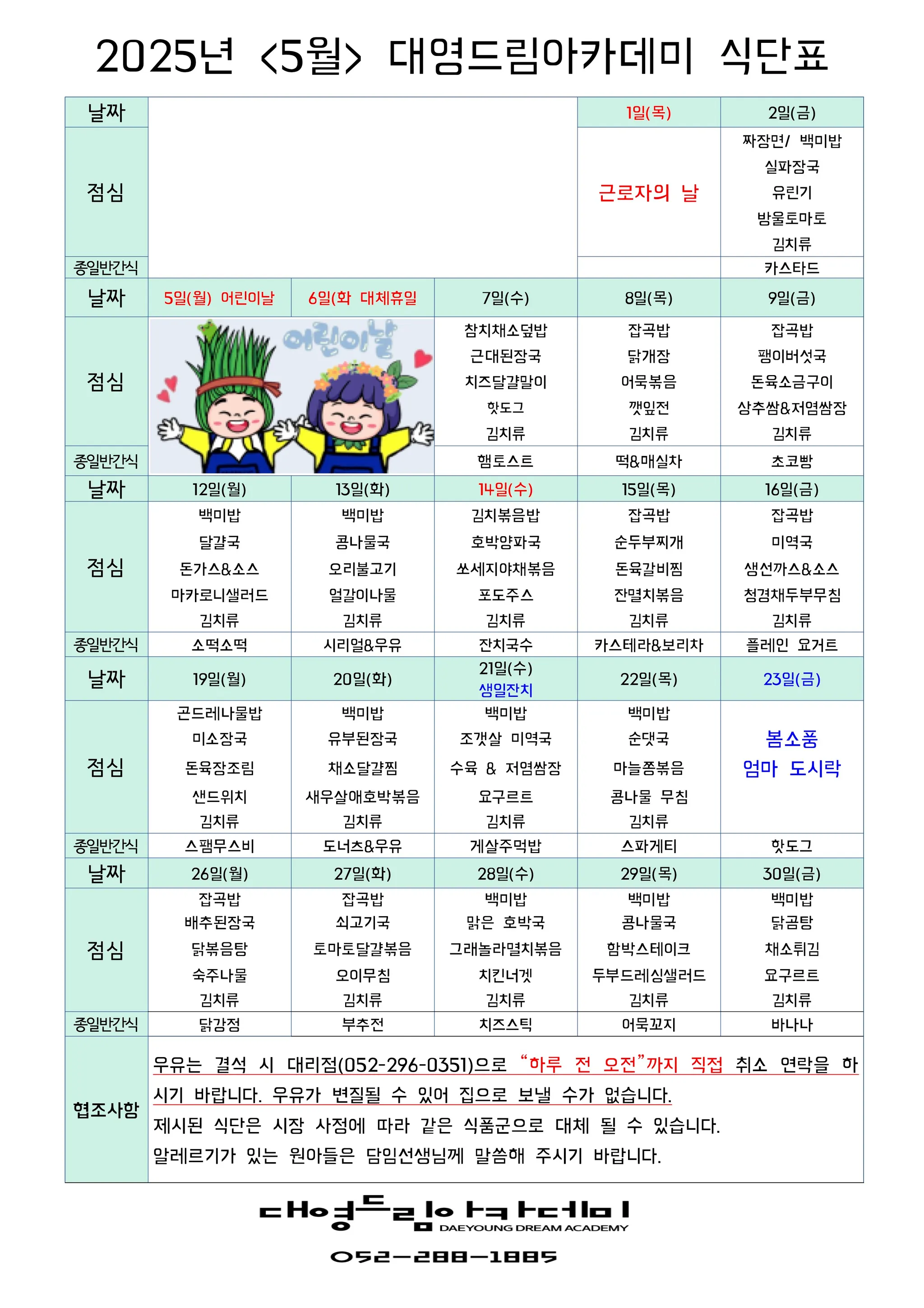 5월 식단표_종일반 간식