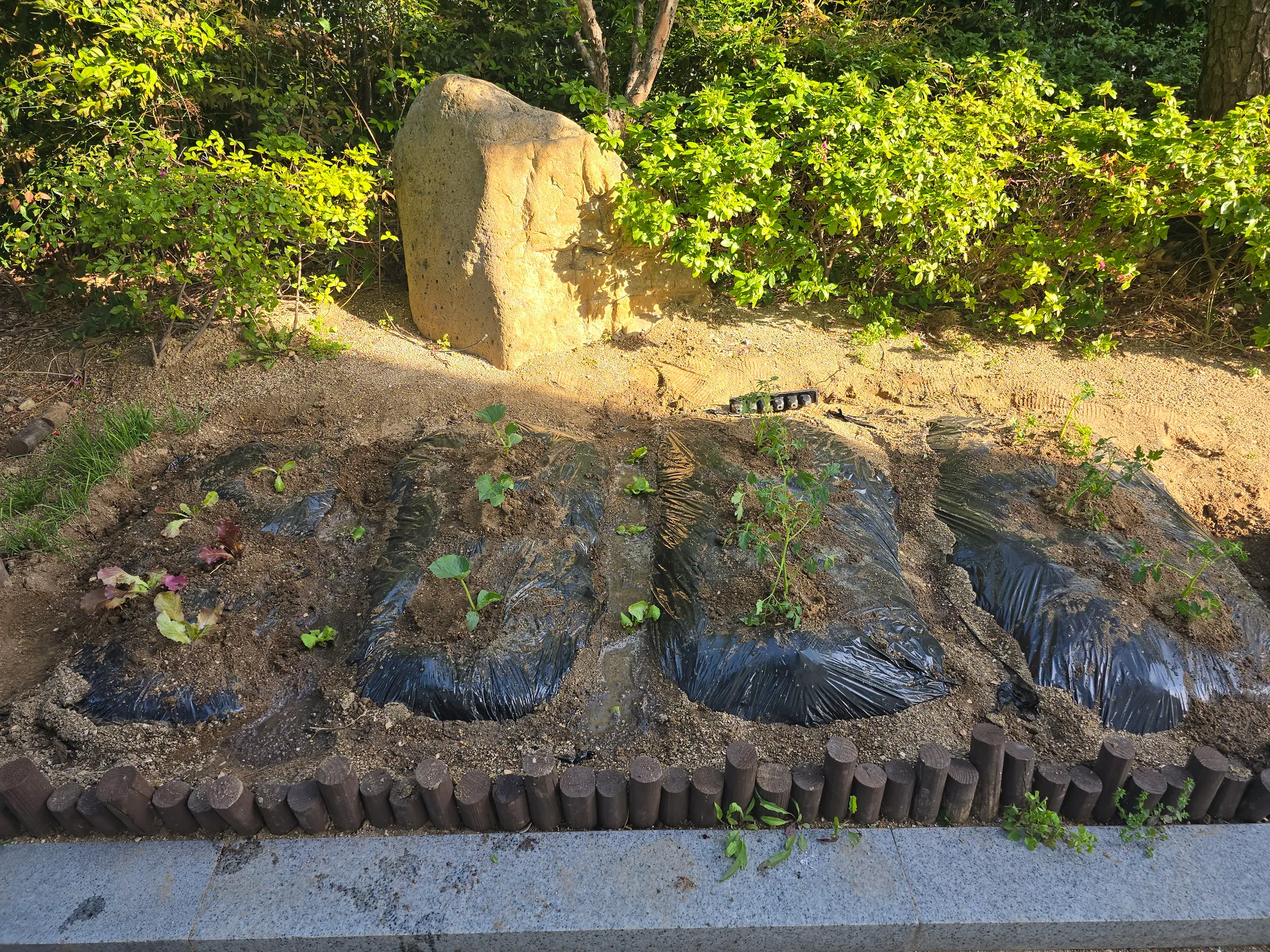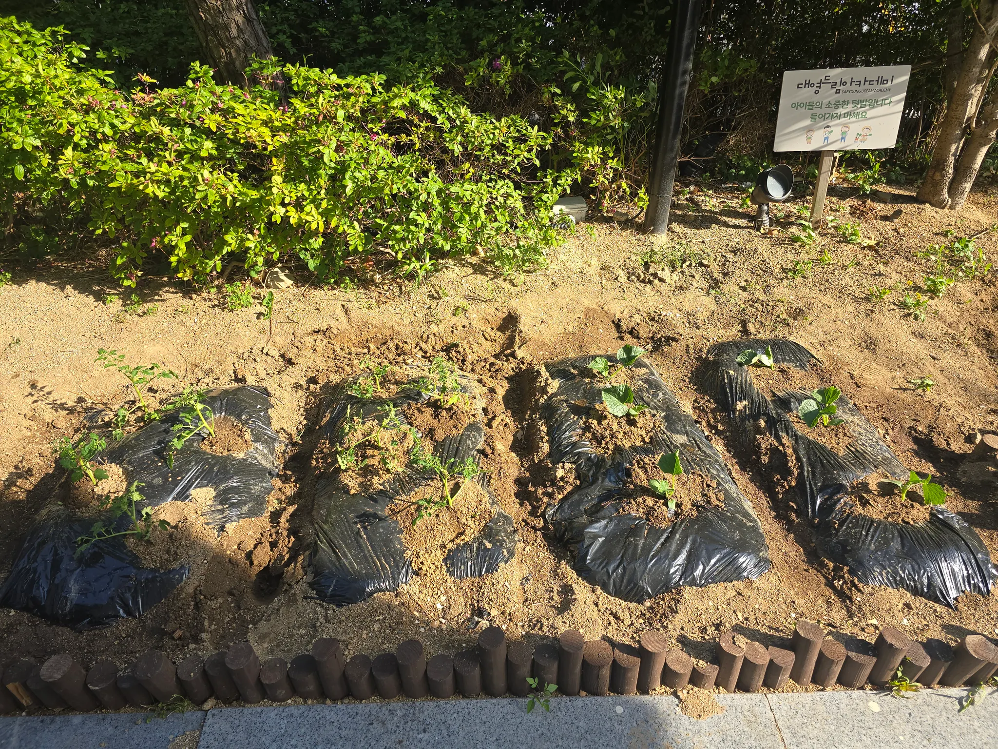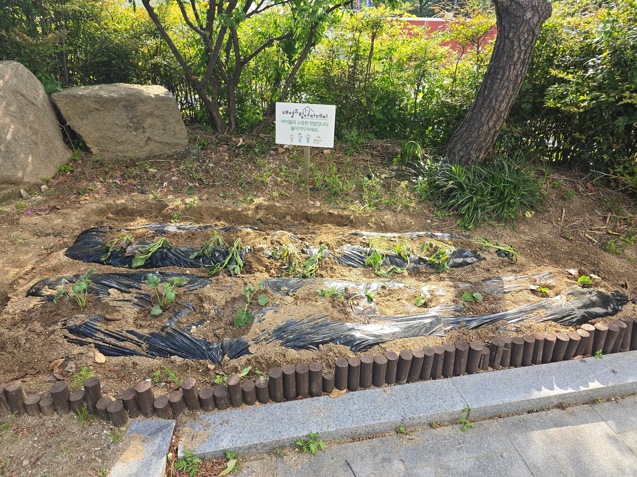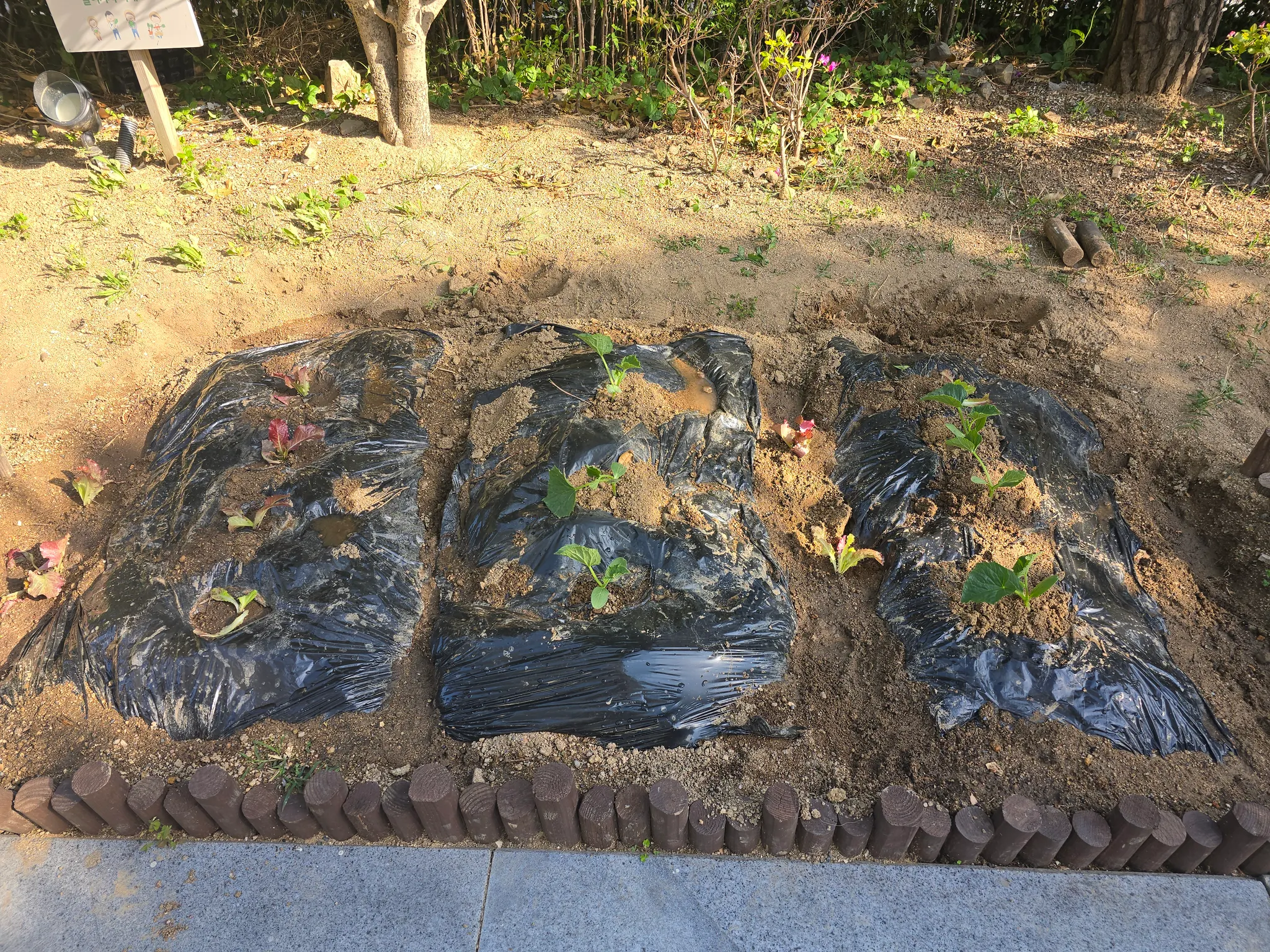 텃밭을 더욱 비옥하게 하기 위해서 지난 주에 비닐을 씌웠습니다~