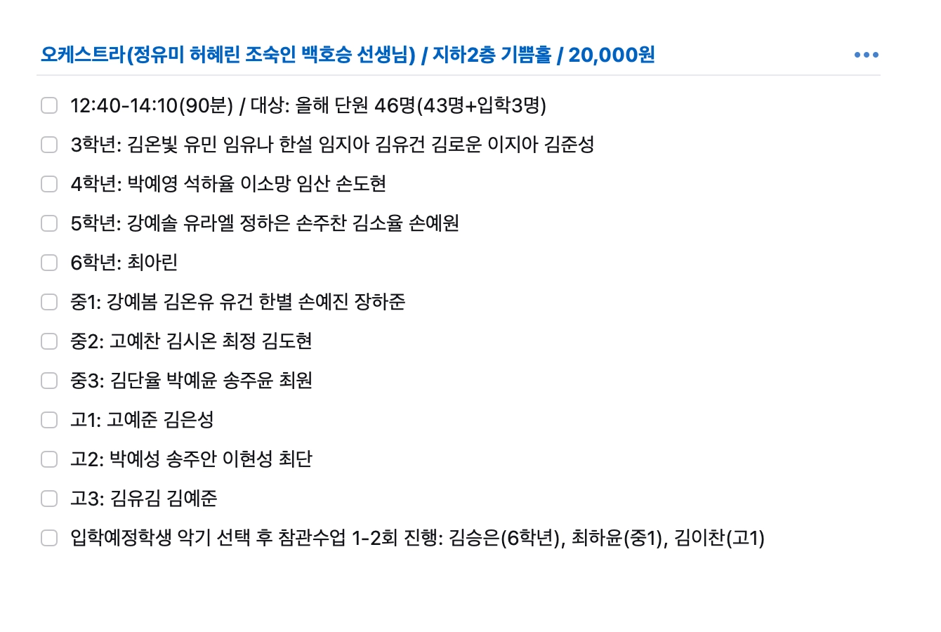 2월 4일(수): 초등학교 3학년 이상 학생 중 악기를 처음 다뤄보는 친구들은 오케스트라 수업 1회 참관을 하시면 됩니다.