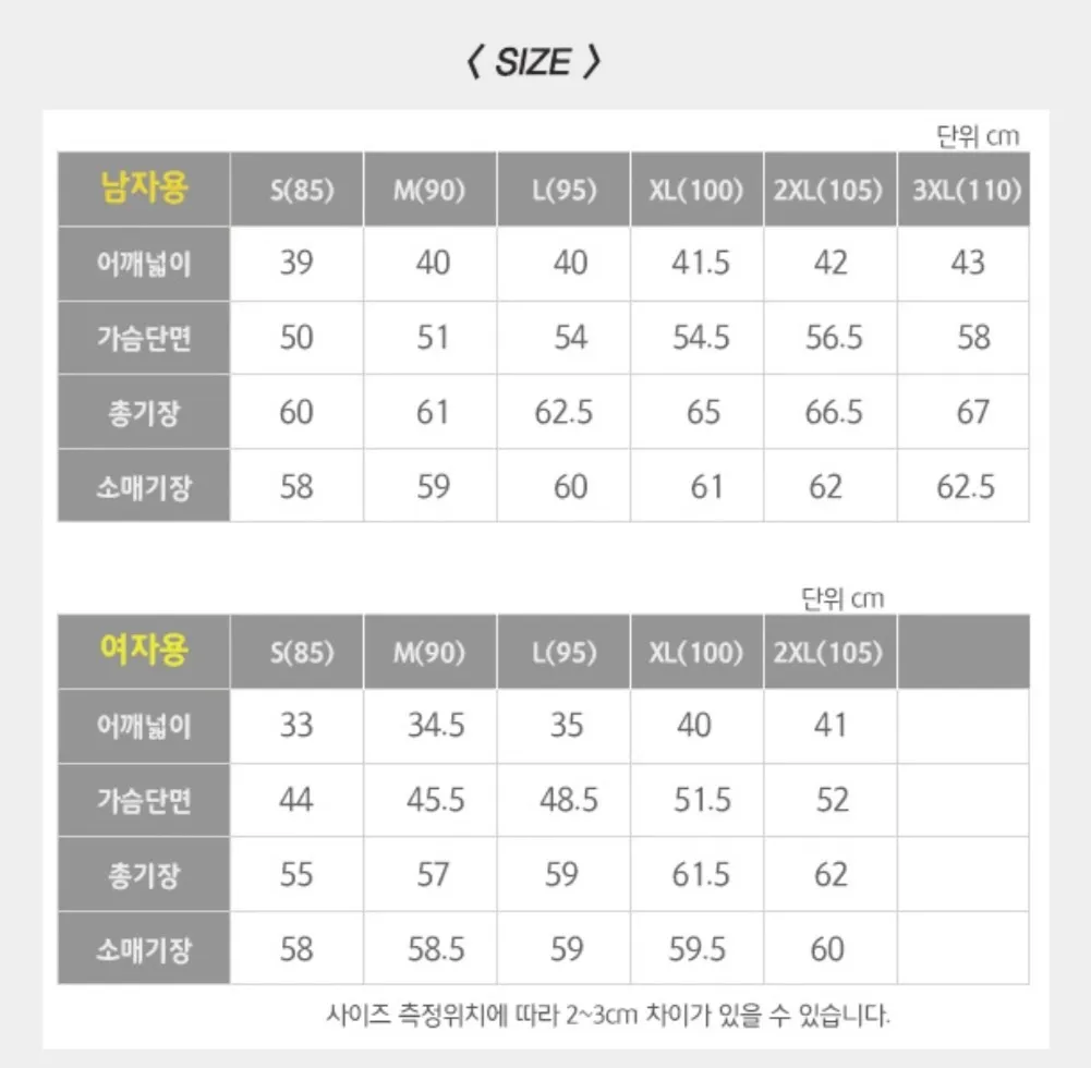 (참고로 작년 1학년 친구들은 여S 사이즈로 주문했습니다.)