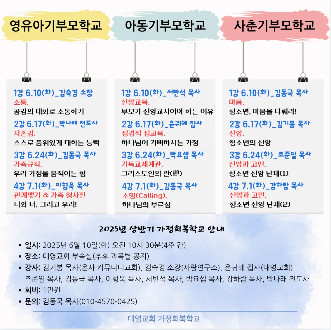 어와나 캠프 일정 관계로 1학기 종강일을 아래와 같이 변경합니다.
