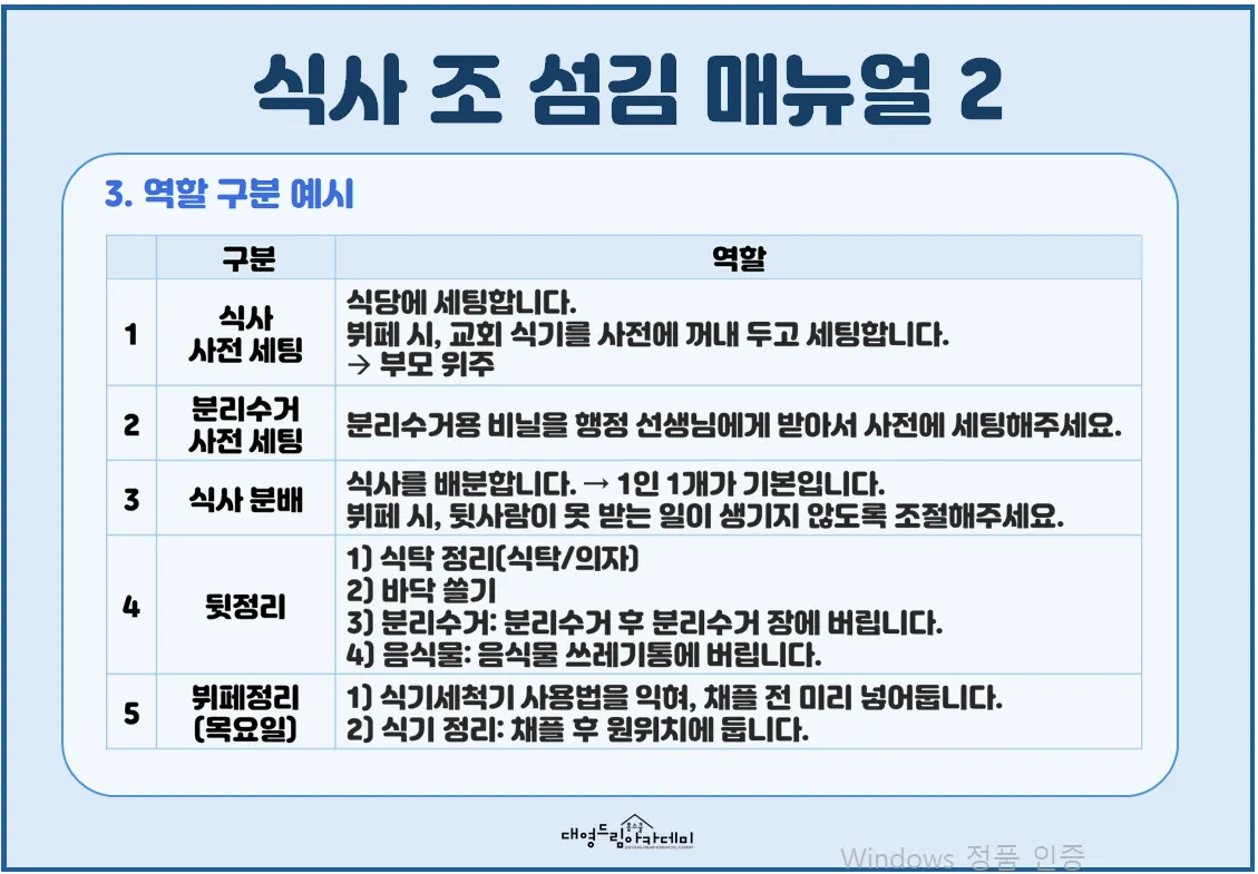 식사 조 섬김 매뉴얼