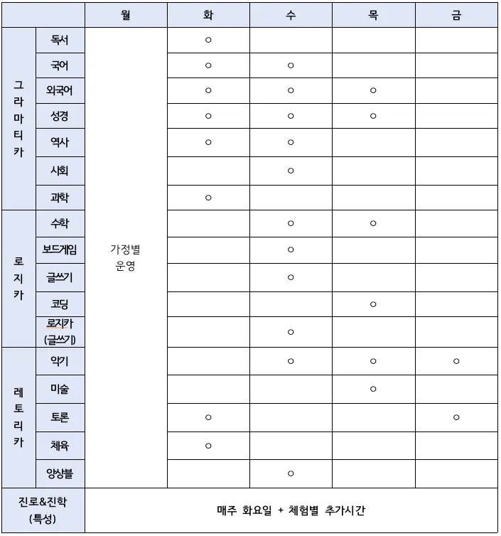 교과목 편성 → 트리비움 항목에 맞춰 교과목 형성
