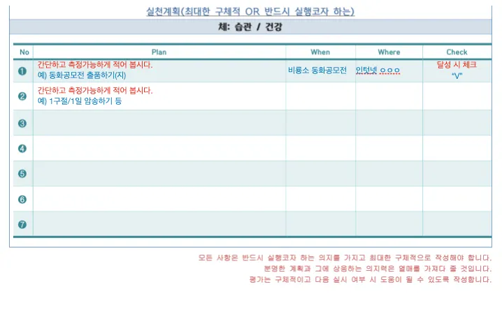 세부목표 등을 위한 개인 기획안을 작성해보셔도 좋습니다.